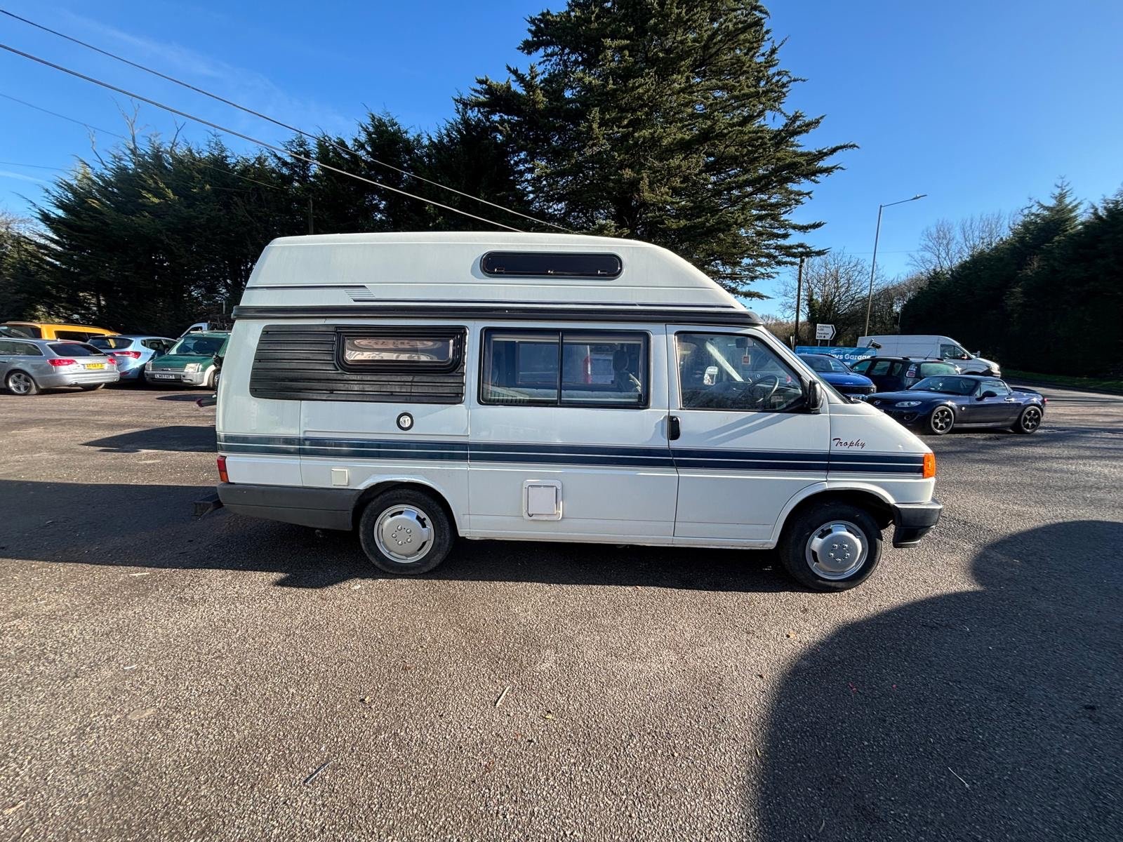1994/L Volkswagen Transporter Auto-Sleepers Trophy high-top LWB motorhome with 105,000 miles on the clock. This diesel vehicle has a MOT that expires on 02/02/2027 and is capable of comfortably accommodating 2 people with its 2 berth layout. The motorhome is in great condition and is perfect for long journeys and camping trips. With ample space and all the necessary amenities, this motorhome offers both comfort and convenience while on the road. Ideal for those looking for a reliable and well-maintained vehicle for their outdoor adventures.